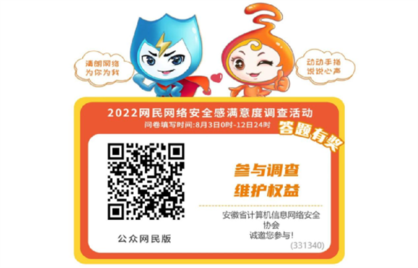 安徽2022網(wǎng)民網(wǎng)絡(luò)安全感滿意度調(diào)查問卷今日正式上線(答題有獎(jiǎng)!)