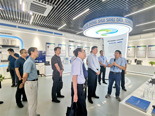 調(diào)研組一行側(cè)重考察了中水三立核心業(yè)務(wù)、產(chǎn)品研發(fā)、應(yīng)用場景等情況,并詳細(xì)了解到公司始終堅持創(chuàng)新發(fā)展、綠色發(fā)展,承建了數(shù)字巢湖、池州水清岸綠等60+項水環(huán)境監(jiān)測治理工程,全力推動水生態(tài)環(huán)境治理。隨后,調(diào)研組前往公司硬件產(chǎn)品展廳進(jìn)行參觀,公司副總工程師周傳敏詳細(xì)介紹了公司水體綜合毒性在線監(jiān)測儀、水體藻類熒光光譜原位監(jiān)測儀等水利信息化硬件產(chǎn)品,實現(xiàn)水情、雨情、水質(zhì)等全要素覆蓋,為水利業(yè)務(wù)提供數(shù)據(jù)基礎(chǔ)。
