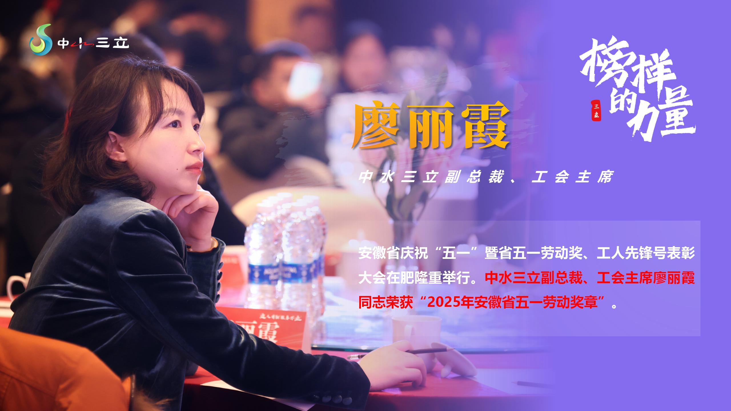 近日,安徽省慶?!拔逡弧濒呤∥逡粍趧营?、工人先鋒號表彰大會在合肥隆重舉行,充分發(fā)揮勞模先進(jìn)的榜樣作用,奮力譜寫中國式現(xiàn)代化安徽篇章貢獻(xiàn)智慧和力量。中水三立副總裁、工會主席廖麗霞同志榮獲“2025年安徽省五一勞動獎?wù)隆薄?/span>