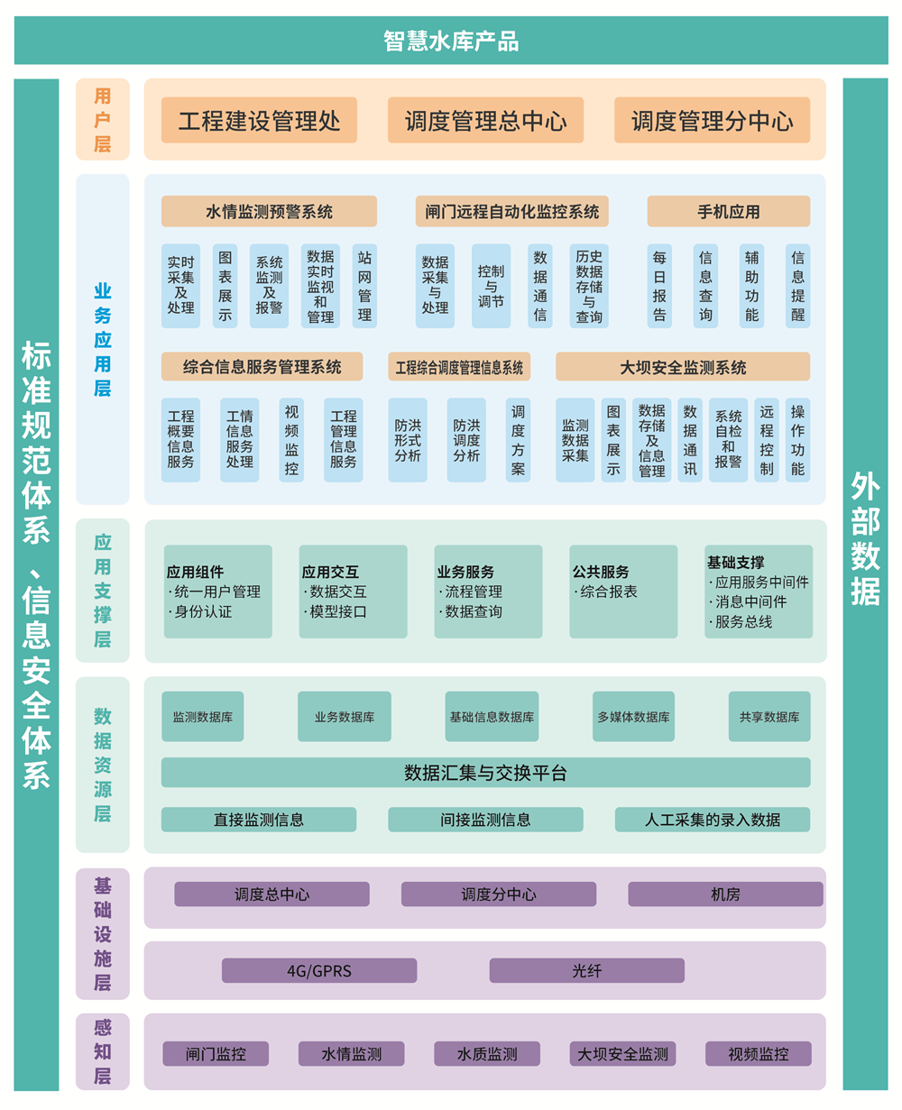 產(chǎn)品覆蓋水庫水雨情監(jiān)測、大壩安全監(jiān)測、自動化控制、視頻圖像監(jiān)控、設(shè)備工程運維、水庫防洪調(diào)度、日常業(yè)務(wù)管理等,旨在為水庫的安全管理和科學(xué)調(diào)度提供有效的非工程措施,解決水庫日常運維管理和汛期應(yīng)急調(diào)度等問題,實現(xiàn)水庫精細(xì)化管理,由傳統(tǒng)人工管理向智慧水利現(xiàn)代化管理進行轉(zhuǎn)變。